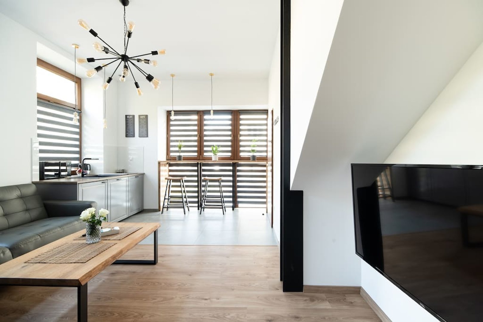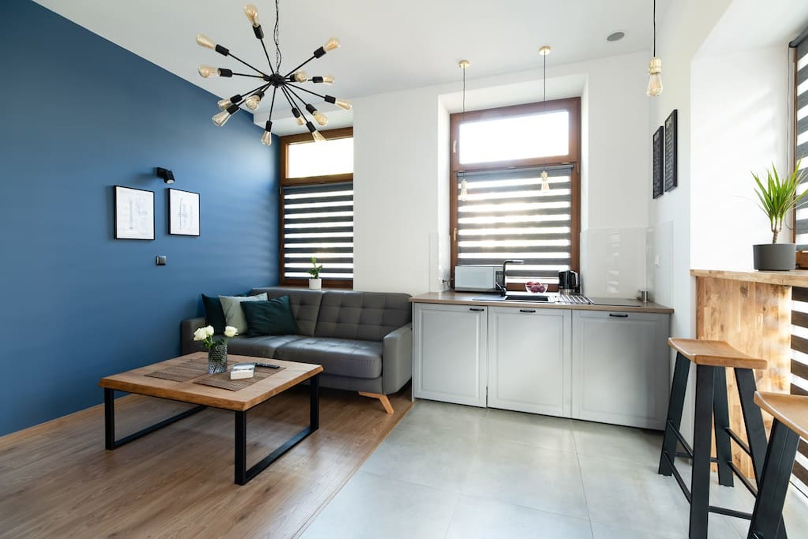 Niepowtarzalny, przestrzenny i komfortowy apartament LUX z 1 sypialnią, salonem, kuchnią i łazienką.