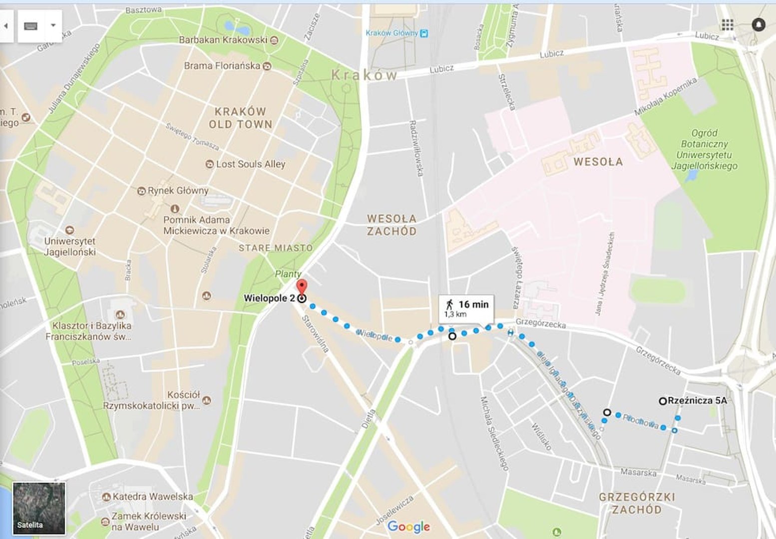 Wysiądź na stacji Kraków Grzegórzki – ok. 20 min.