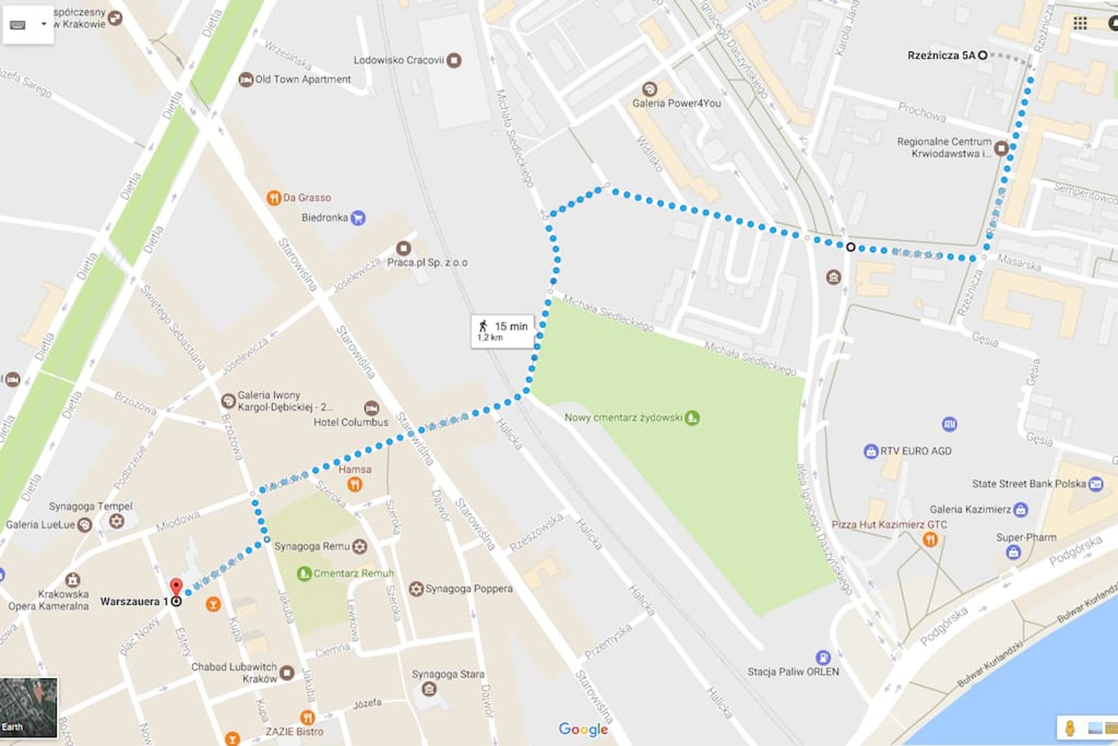Dojazd na ul. Rzeźnicza 5A, Kraków