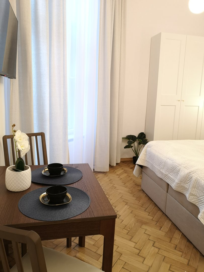Przytulne, jednopokojowe studio dla 2–4 osób w centrum Krakowa – w pełni wyposażone, idealne dla pary lub krótkiego city breaku blisko Starego Miasta i Kazimierza.