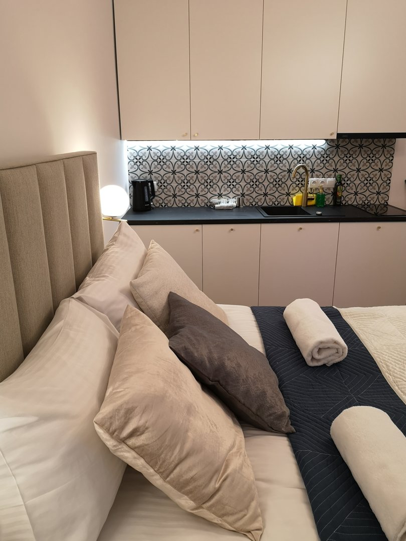 Niepowtarzalny, przestrzenny i komfortowy apartament LUX z 1 sypialnią, salonem, kuchnią i łazienką.