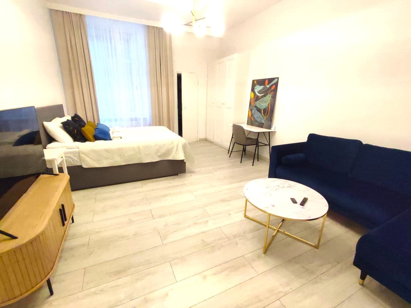 Niepowtarzalny, przestrzenny i komfortowy apartament LUX z 1 sypialnią, salonem, kuchnią i łazienką.